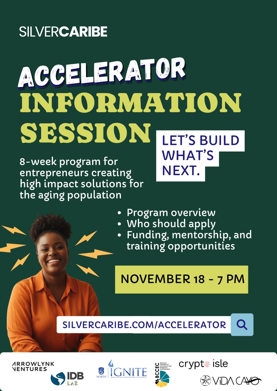 The SilverCaribe Accelerator is an 8-week hands-on program for innovators building solutions for the aging population AND for older adults ready to become entrepreneurs themselves.